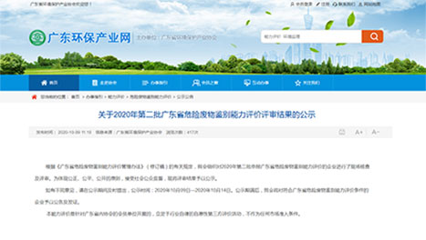 • 廣東省危險廢物鑒別能力評價證書